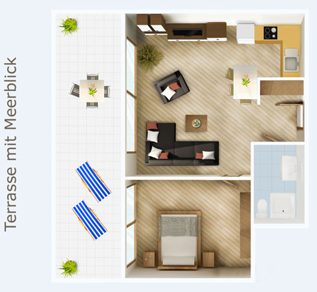 Erleben und genießen Sie einen romantischen Sonnenuntergang ins Meer auf der eigenen Terrasse!